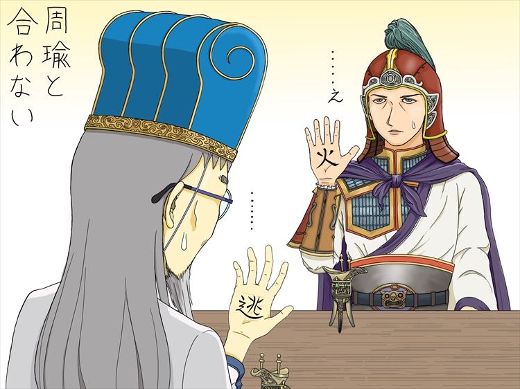 というか、上記イラストの時点で、天才軍師ではないんですけどね。赤壁直前の劉備は、逃げる場所もないだろうし…